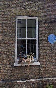 A domestic rectangular window like the Cobbs' house windows is used for the window. It was made out of wood with curved wooden details.
